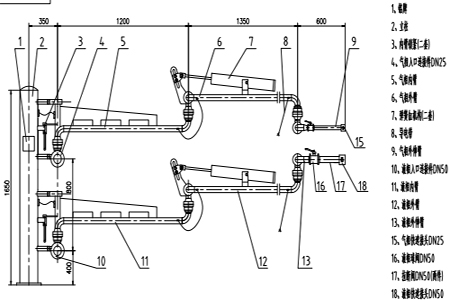 液化气装卸臂又叫液化气鹤管、LPG鹤管,是用于液化气收发作业的装卸车鹤管,其参数如下: